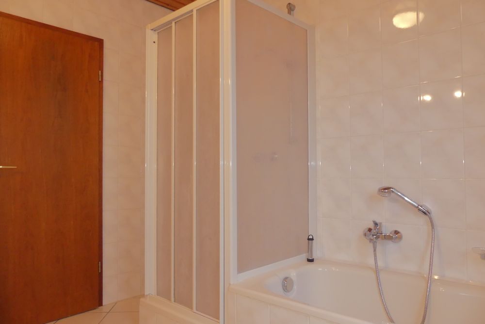 Wohnung Nr. 1 im Untergeschoss: Wohn-/Esszimmer mit Zugang zur Terrasse und zum Garten, wie auch das Schlafzimmer, Küche, Flur und Wannenbad, sowie ein Kinderzimmer mit Duschbad