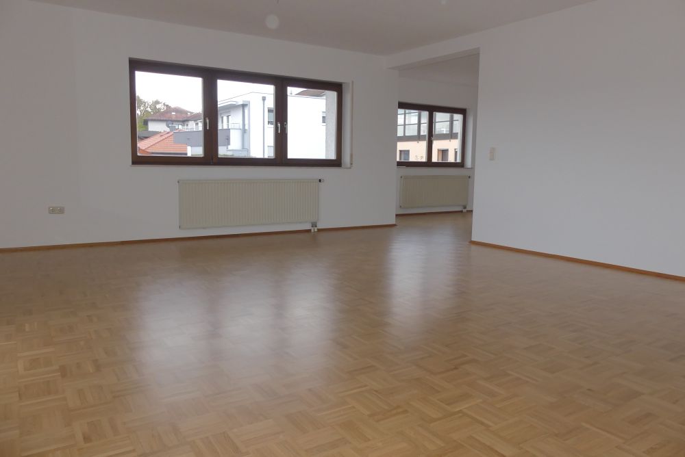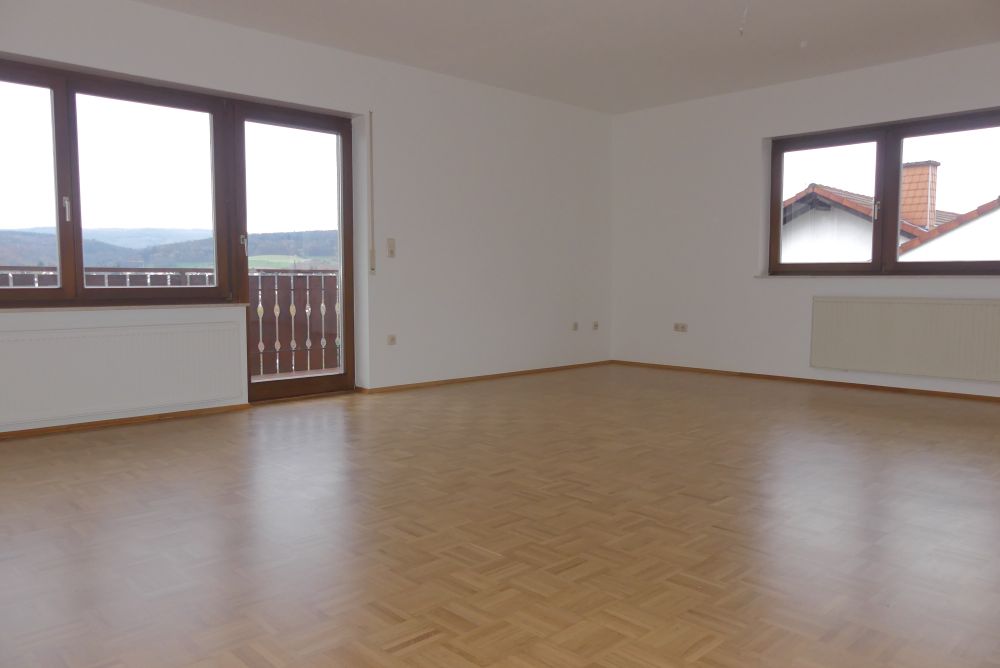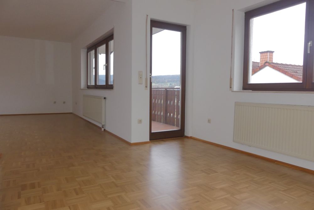 Wohnung Nr. 3 im Dachgeschoss: Wohn-/Esszimmer mit Zugang zum Ostbalkon und Südbalkon, Küche, Schlafzimmer, Flur und Wannenbad, sowie ein Kinderzimmer