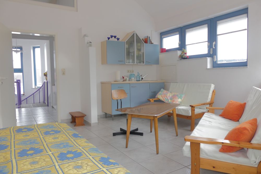 Im Dachgeschoss steht den Mitarbeitern ein großzügiger und heller Aufenthaltsbereich zur Verfügung. Ergänzt wird dieser durch eine Kochgelegenheit, ein Flur mit der Personal-Garderobe und ein Duschbad mit WC.